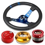NRGSRK110HRG+200RD+101RD+016RBL, NRG Innovations 13.78" 350mm 3" Deep Dish Style Black Leather Blue Center Marking Blue Spokes Racing Steering Wheel Combo with 6 Hole Short Hub Adapter with Gen 2.0 Red Quick Release with Red Lock Hub Kit SRK-110H